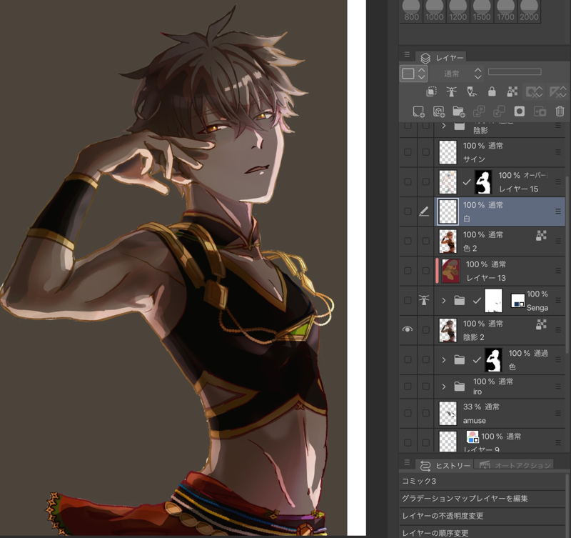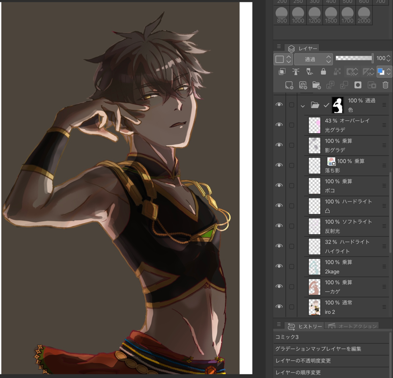 やっぱり暗いな〜〜と思って色レイヤーを薄くしたものを下地と統合して、