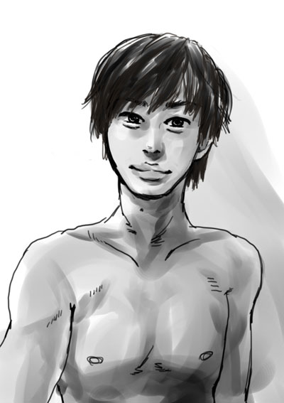 もったいないので、半裸+リアルタッチ影+notニコ目 差分絵も描いたので続きに置いておきます。(半裸だし一応下げます 笑)